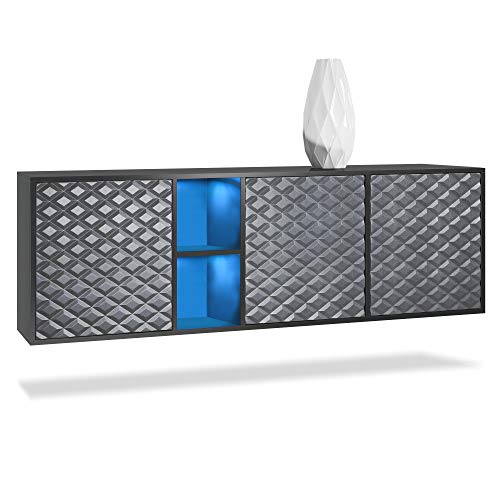Buffet Armoire Cuba, Noir Mat, Gris Acier, LED