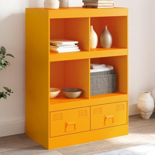 JUNZAI Armoire à tiroirs Jaune Moutarde 80x35x101,5 cm Acier...