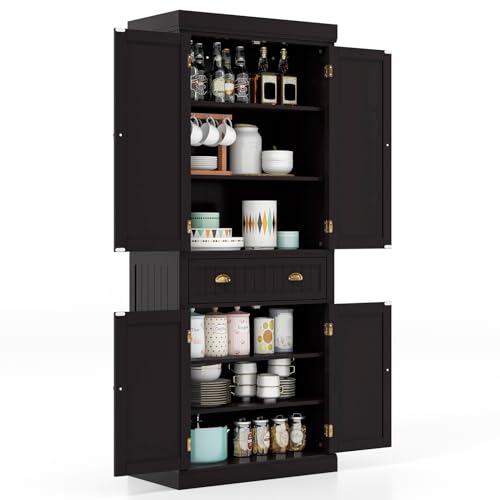 GOPLUS Armoire Haute de Cuisine avec 4 Portes & 2 Tiroirs, B...