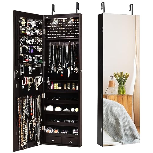HOMASIS Miroir Boîte à bijoux mural et porte, armoire à bijo...
