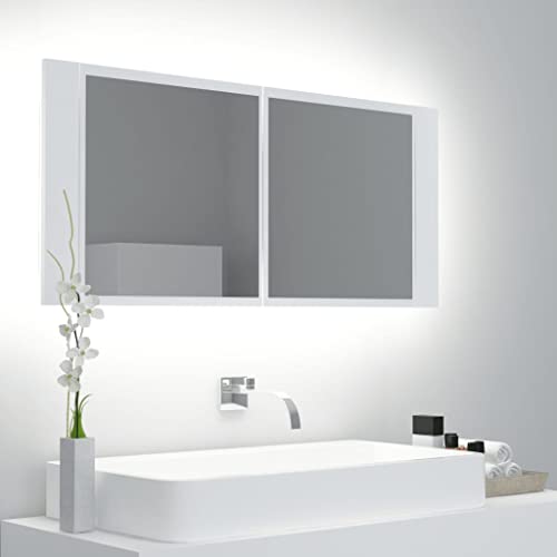 Armoire LED à Miroir Blanc Durable 100x12x45cm