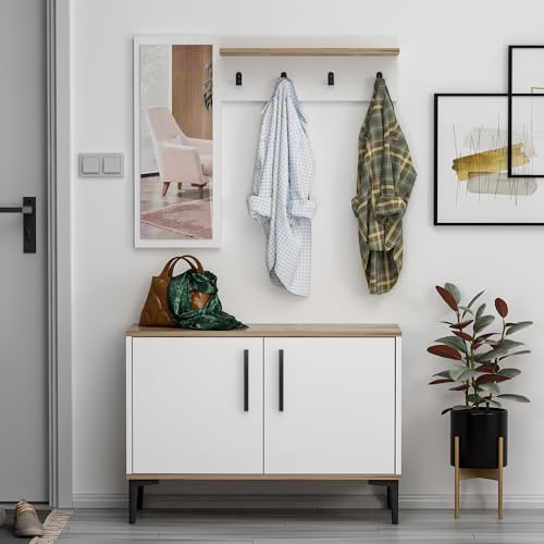 Kiamami Multifonctionnelle Armoire Blanc Chêne Porte Miroir...