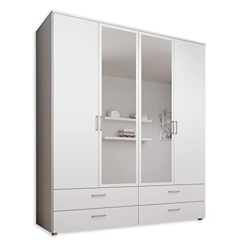 Rauch Möbel Quadra Armoire Blanc Verre Noir Miroir 226x210x6...
