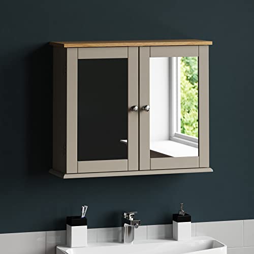 Bulané Miroir Armoire Salle de Bain Gris 80x10x37cm