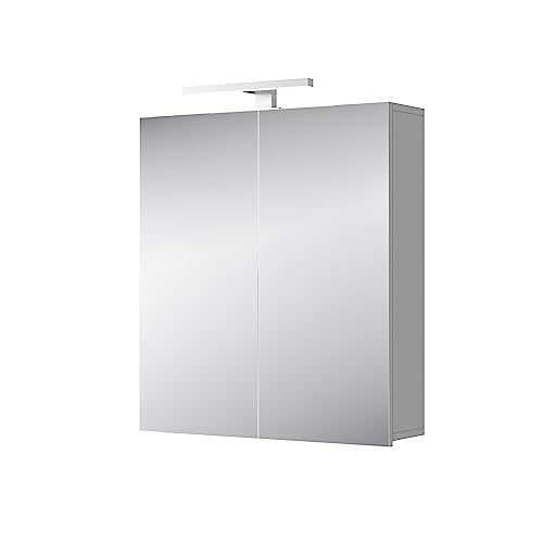 Miroir Armoire Merkur 60 cm Large Éclairage LED Blanc/Gris