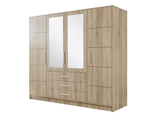 Armoire à chambre avec miroir et tiroirs, 2 portes pivotante...