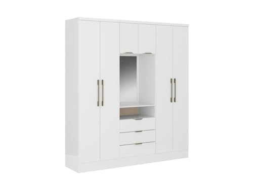 Armoire unique 6 portes, 3 tiroirs, avec miroir ELORIO - Bla...
