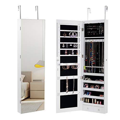 Armoire à Bijoux 360° avec Miroir Psyché, Verrouillable, Gra...