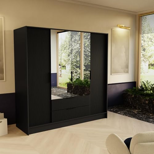 Armoire Penderie Étagères Portes Coulissantes Miroir Tiroirs...