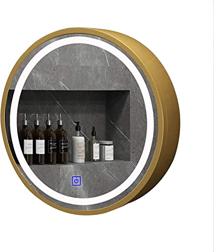 Armoire miroir ronde LED pour salle de bain, rangement noir...