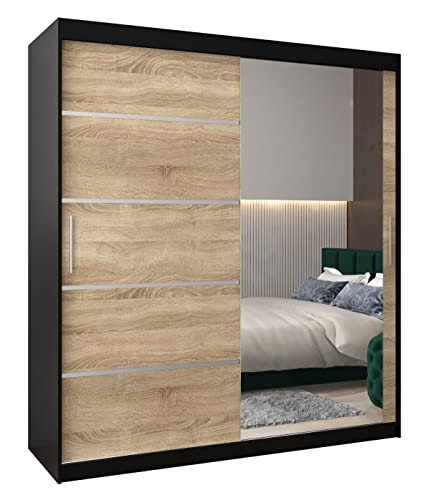 Armoire à Deux Portes Coulissante Noir Matte Moderne avec Mi...