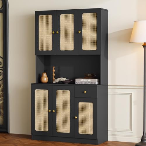 KOMH Armoire haute noir rotin - Buffet polyvalent