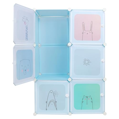 Pour les enfants : étagère modulable bleu clair motifs anima...
