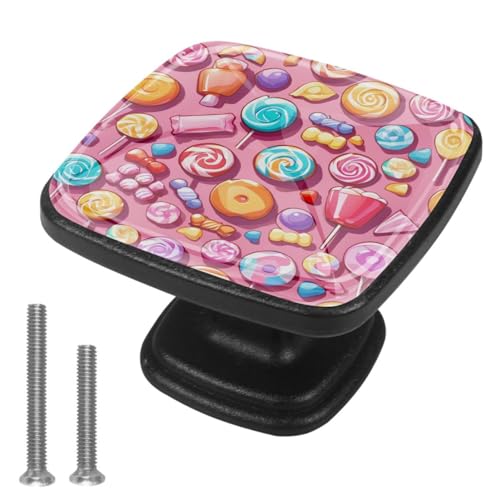 Lot de 4 boutons d''armoire carrés arrondis et décoratifs po...