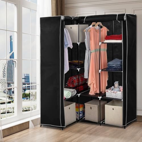 YSUEFIJO Portable Armoire Pliable Métal, Garde Robe Tissu, P...
