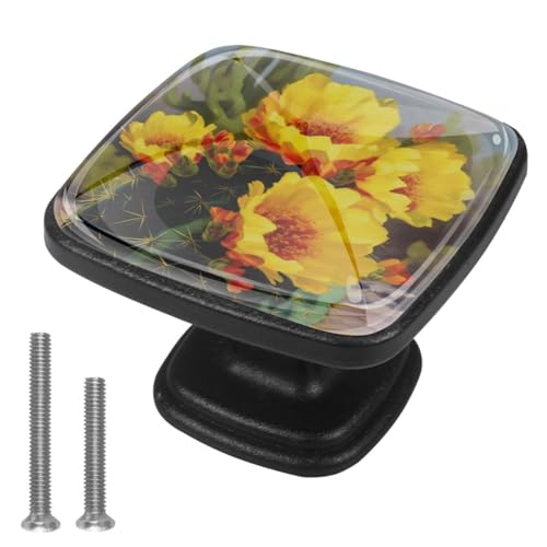 Lot de 4 boutons d''armoire noirs décoratifs carrés pour cui...