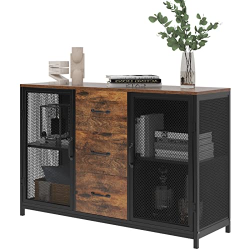 Industriel Buffet de cuisine - Armoire à 3 tiroirs et 2 armo...