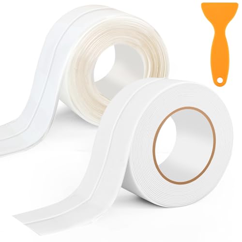 Joint Silicone Blanc Salle de Bain,2 PCS Bande Etancheite Au...