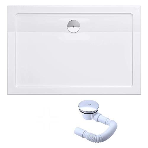 Doporro Bac à Douche Blanc Extérieur Plat Acrylique 80x100x5...