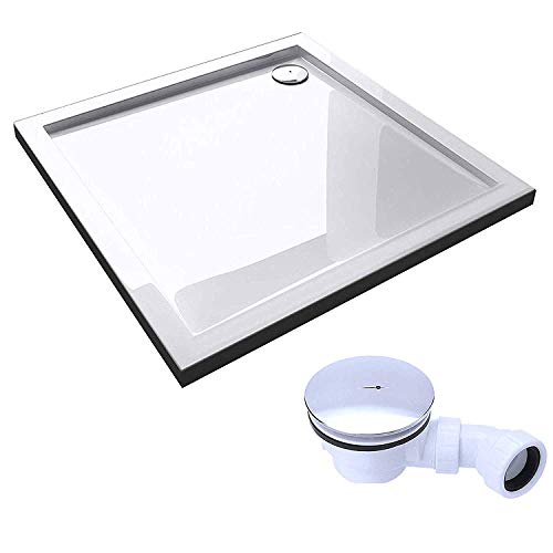 Doporro Bac à Douche Blanc Extérieur Plat Acrylique 80x90x5c...