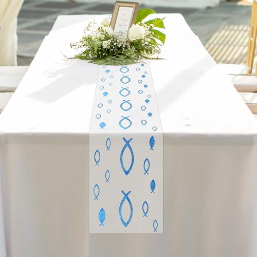 Chemin de Table Poisson Bleu Organza 6m x 30cm