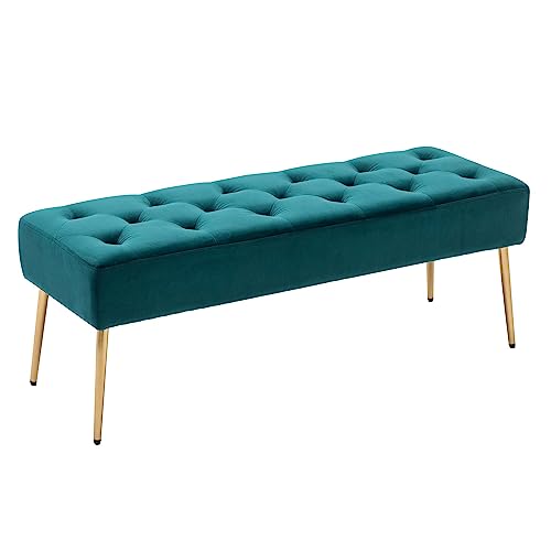 Banc Rembourré Vert Bleu avec Boutons et Repose-Pieds