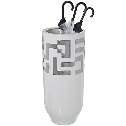 Porte-parapluie céramique blanc argenté 24.5 x 56 cm