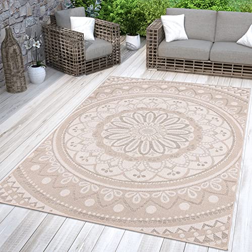 TT Tapis Exterieur Jardin Bohème Oriental Beige Blanc Sable...