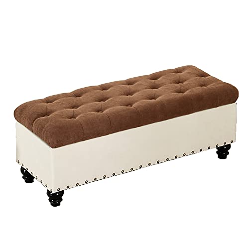 Tabouret rangement, Banc Ottoman stockage tissu lin coton