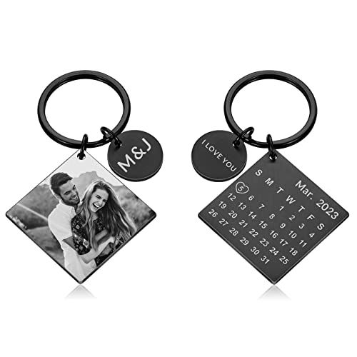 Buaodam Porte-clés Personnalisé avec Gravé Date Photo et Tex...
