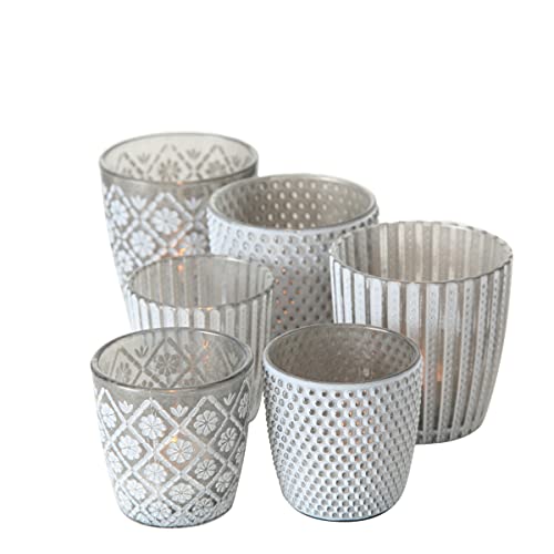 Seaside64 Lot de 6 photophores en verre – 3 motifs fleurs ro...