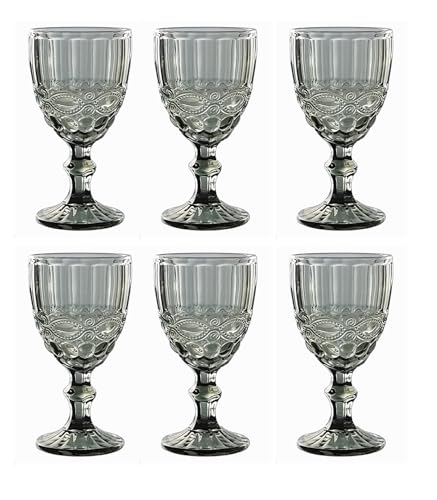 Lot de 6 verres à vin vintage colorés avec gaufrage (nœud/gr...