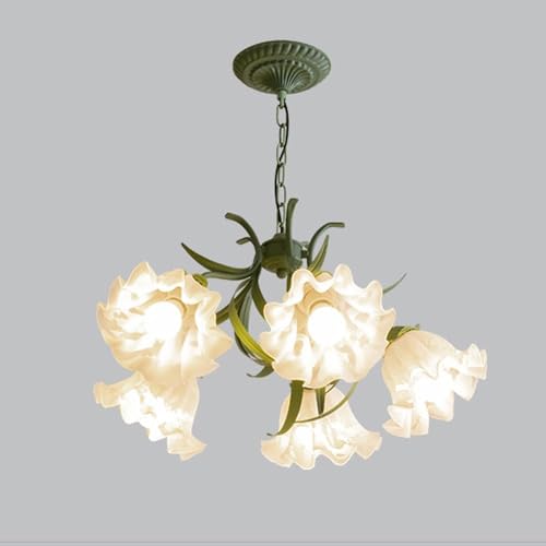 Lustre à fleurs en verre rond, grand, sur table, verte 5 lum...