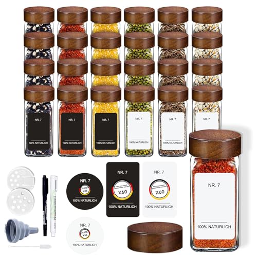 【Lot de 24 pots à épices carrés, 4 types d''étiquettes vier...