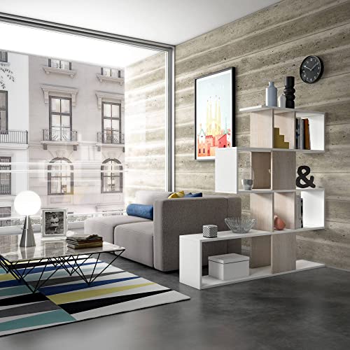 Bibliothèque double face Hoya 145x29h, étagères zig zag, bla...