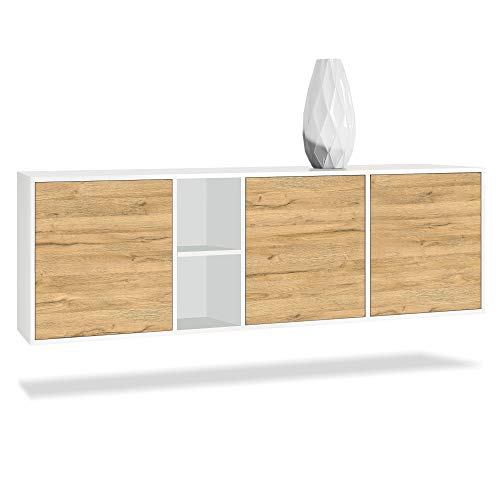 Vladon Commode Cuba Blanc Mat Chêne Nature Buffet Moderne Sa...