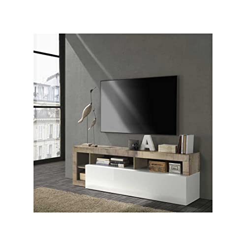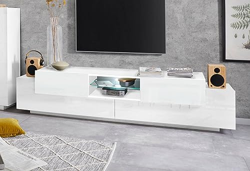 TV Meuble TV 1 Abattant Niches Blanc Laqué - Ischia L 184 x...