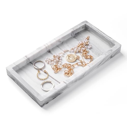 ZENFUN Lot de 2 plateaux en résine de marbre,20x10x1.8 cm,Or...