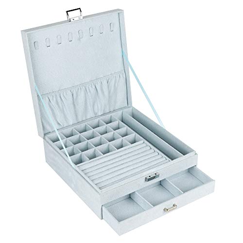 Boîte à bijoux 2 couches avec tiroirs, boîte de rangement mu...