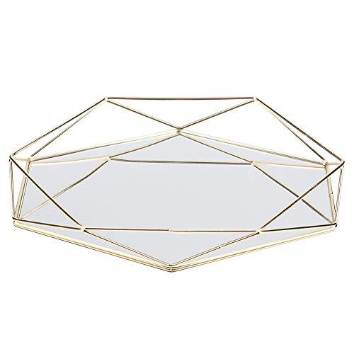 Plateau décoratif miroir doré, miroir avec bijoux, miroir co...
