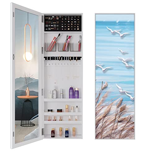 Armoire à Bijoux Murale/Suspendue 2 en 1, Miroir Antidéflagr...