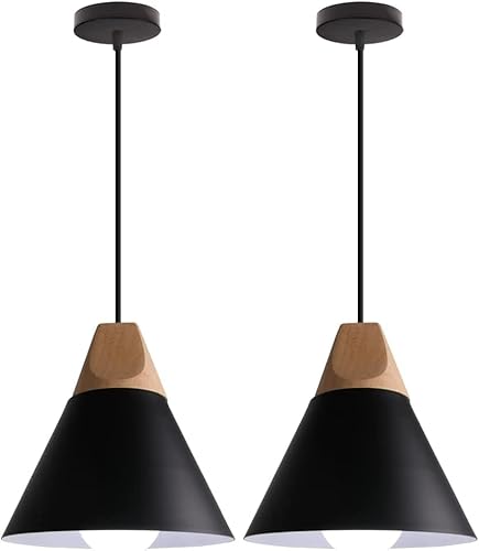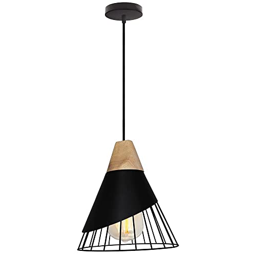 Lot de Suspension Industrielle Métal Bois Lustre E27 Noir