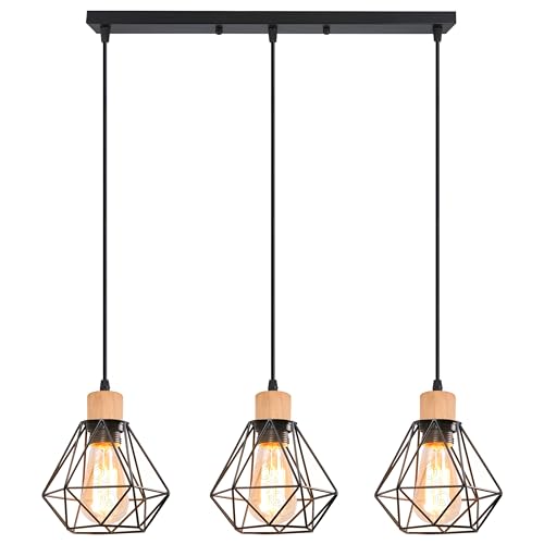 iDEGU 3 Lampes Suspension E27 Métal Bois Lustre