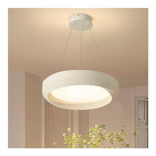Lustre blanc LED suspendu rond 36W, plafonnier rustique, sus...