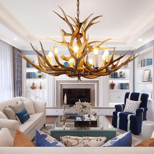 Lustre bois cerf résine 8 lumières grand lustre rustique fau...