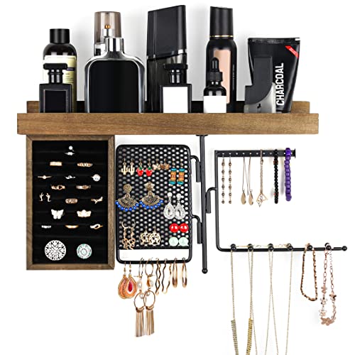 Belle porte-bijoux murale en bois avec boîte à bague, suppor...