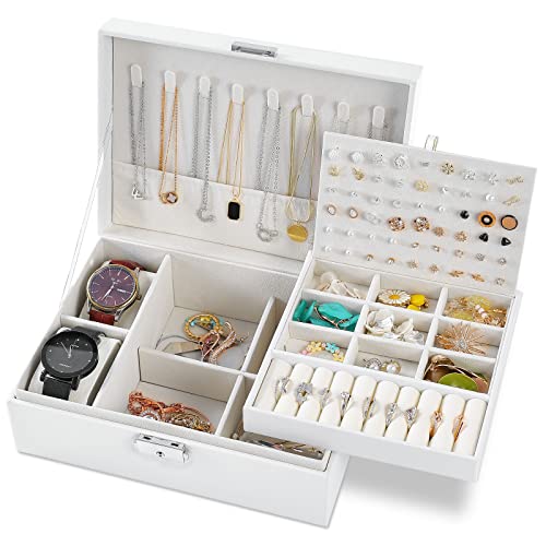 E-MANIS Boite a Bijoux pour Femme, 2 Couches, Rangement Bijo...
