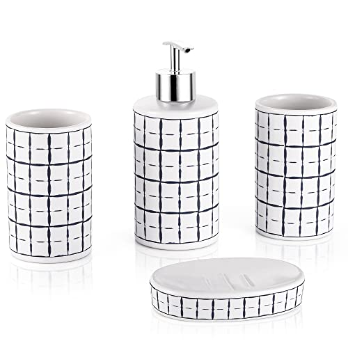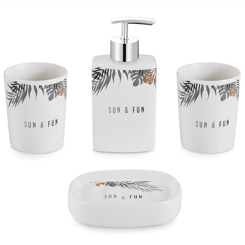 Ensemble Céramique Salle de Bain 4 Pièces Distributeur Savon...