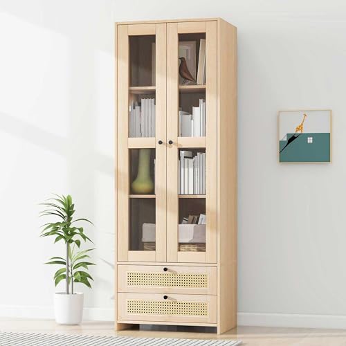 HAINEW Buffet en rotin aspect bois avec 2 portes en acryliqu...