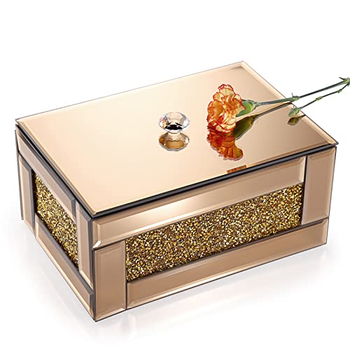 BTSKY Boîte à bijoux en verre miroir décorée avec des diaman...